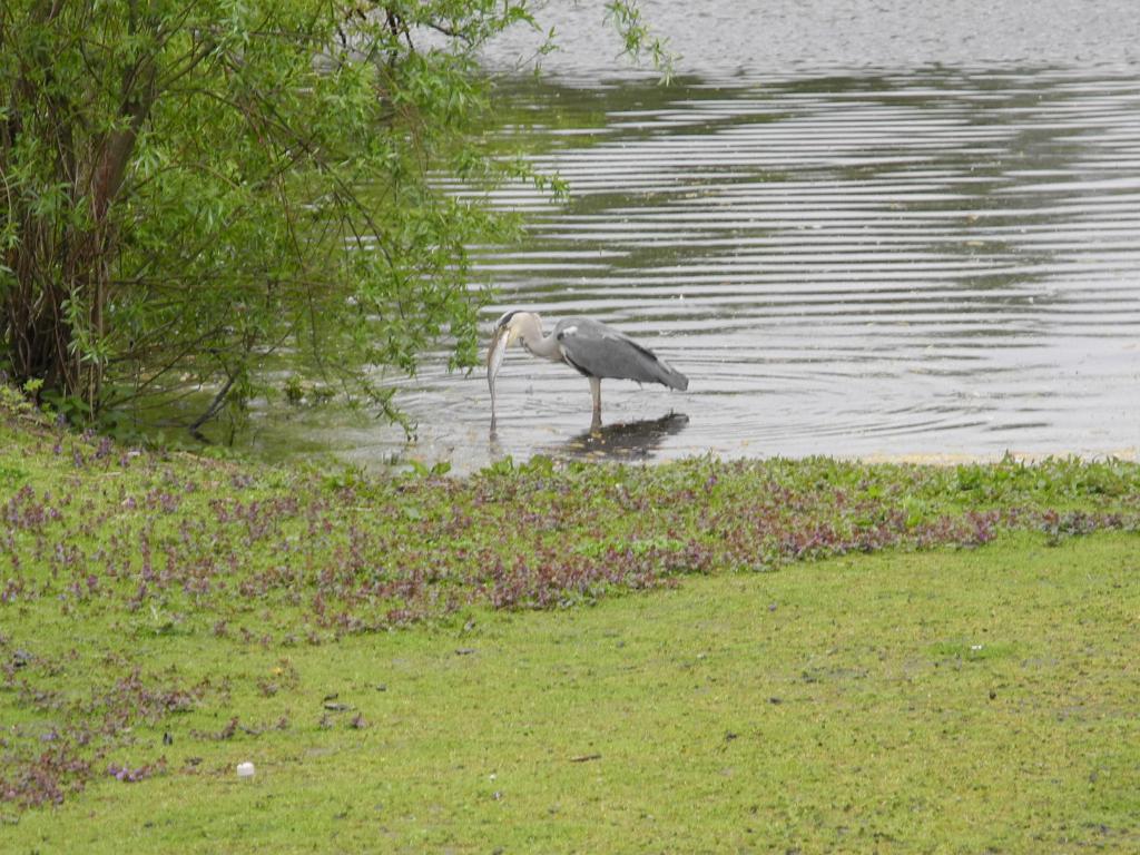 De reiger heeft een vis gevangen